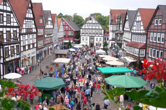 Rintelns historische Altstadt, im Herzen des Weserberglandes an der Grenze zu Nordrhein-Westfalen, lädt im Juni anlässlich der Freizeit-, Breitensport- und Familienveranstaltung "Felgenfest im Wesertal" von Bodenwerder über Hameln bis Rinteln, auf Markt- und Kirchplatz zum Bauernmarkt ein.