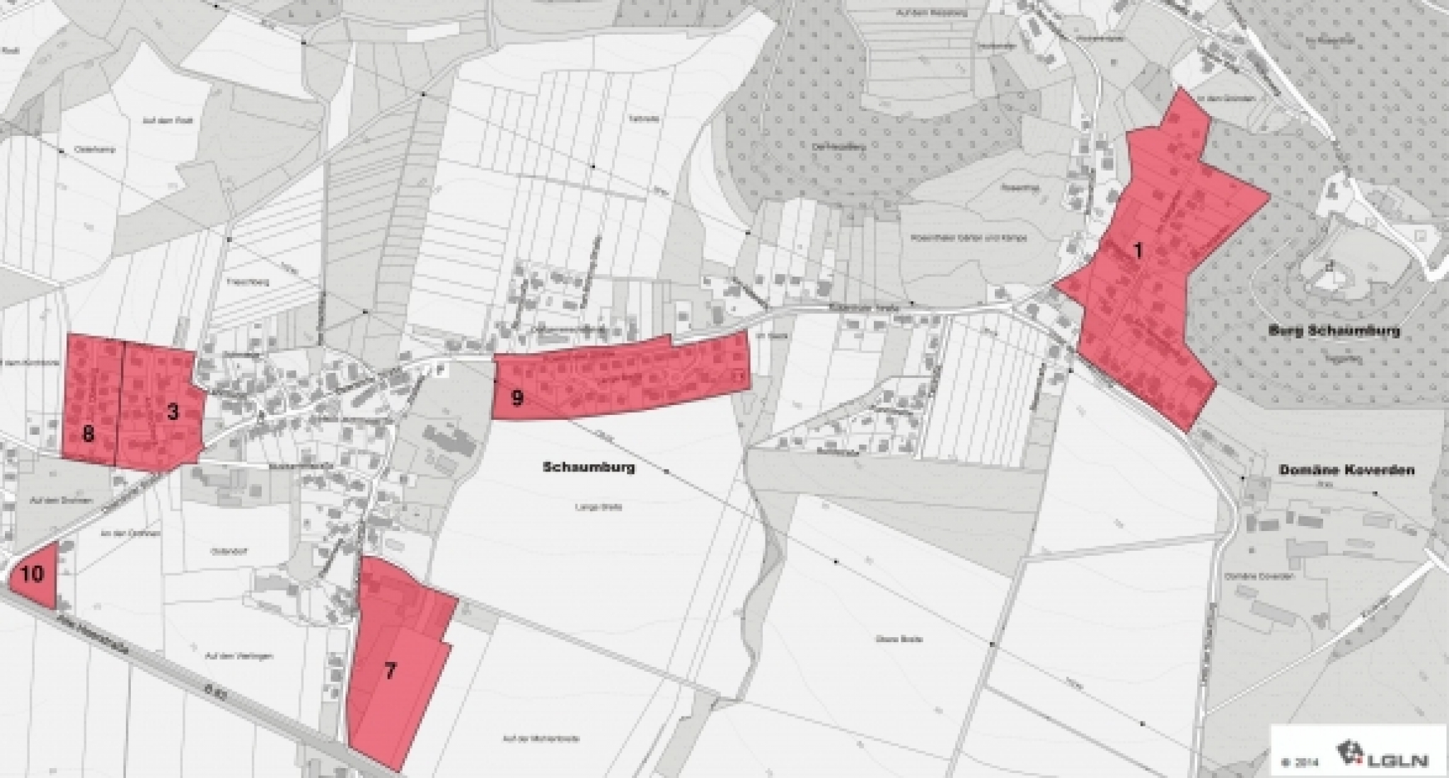In der Grafik sind die Geltungsbereiche der Bebauungspläne vom Ortsteil Schaumburg dargestellt. Klicken Sie auf auf die Grafik um die Karte zu vergrößern bzw. um heranzuzoomen.