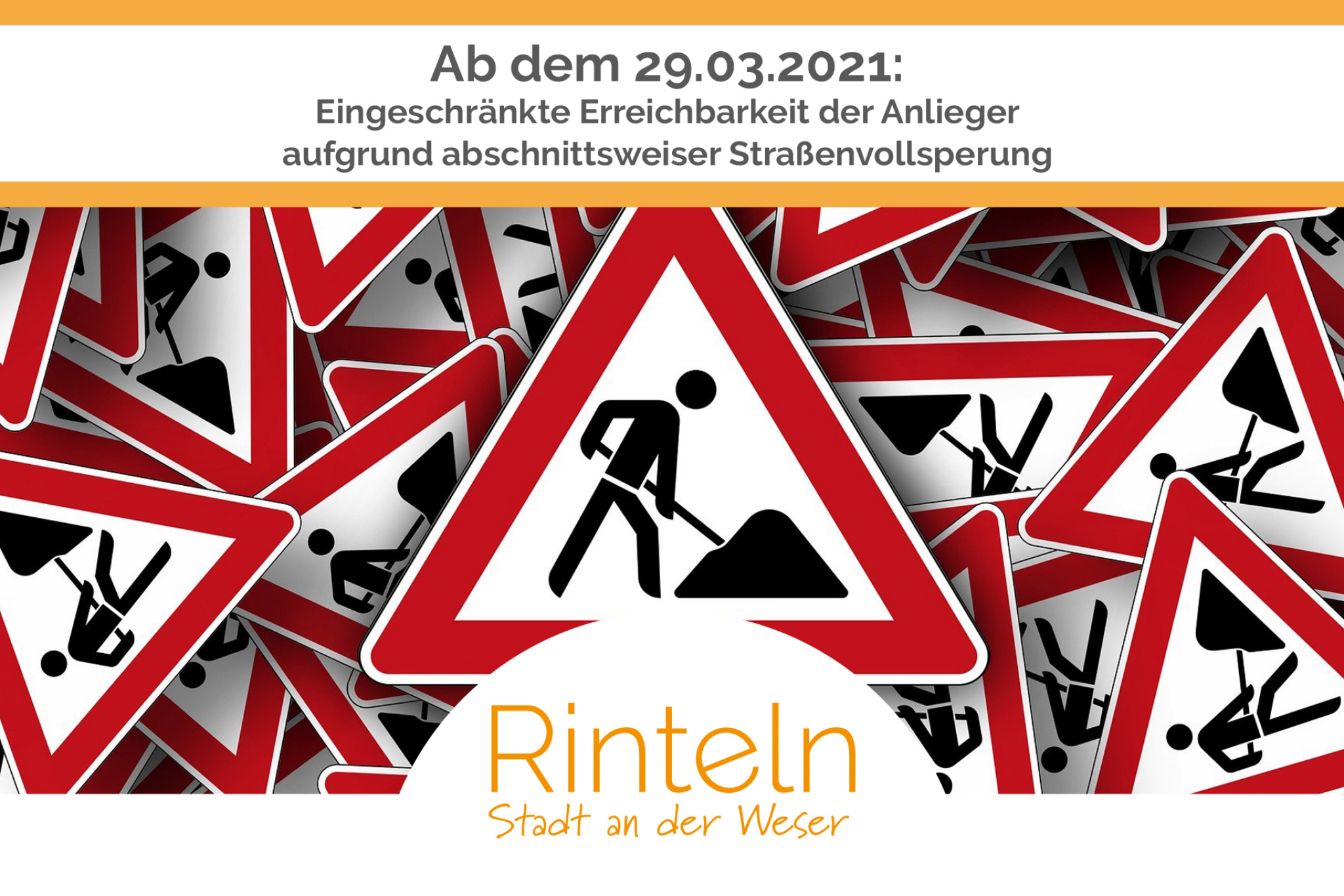 Eingeschränkte Erreichbarkeit der Anlieger aufgrund abschnittsweiser Straßenvollsperung - Erweiterung Industriegebiet-Süd, Röntgenstraße in Rinteln