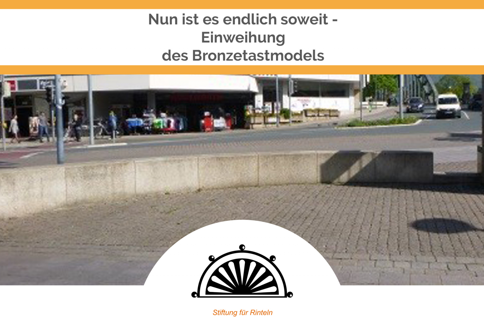 Am Sonnabend, dem 26.06.2021, wird um 12 Uhr in einer kleinen Feierstunde das Bronzetastmodell der Altstadt von Rinteln am Standort Ecke Weserstraße/Pferdemarkt von der Stiftung für Rinteln eingeweiht. Der Sockel steht bereits, darauf wird das Bronzemodell der Innenstadt von Rinteln im Maßstab 1:650 montiert. Künftig können sich Besuchende anhand des Modells einen besseren Eindruck von der Innenstadt verschaffen.
