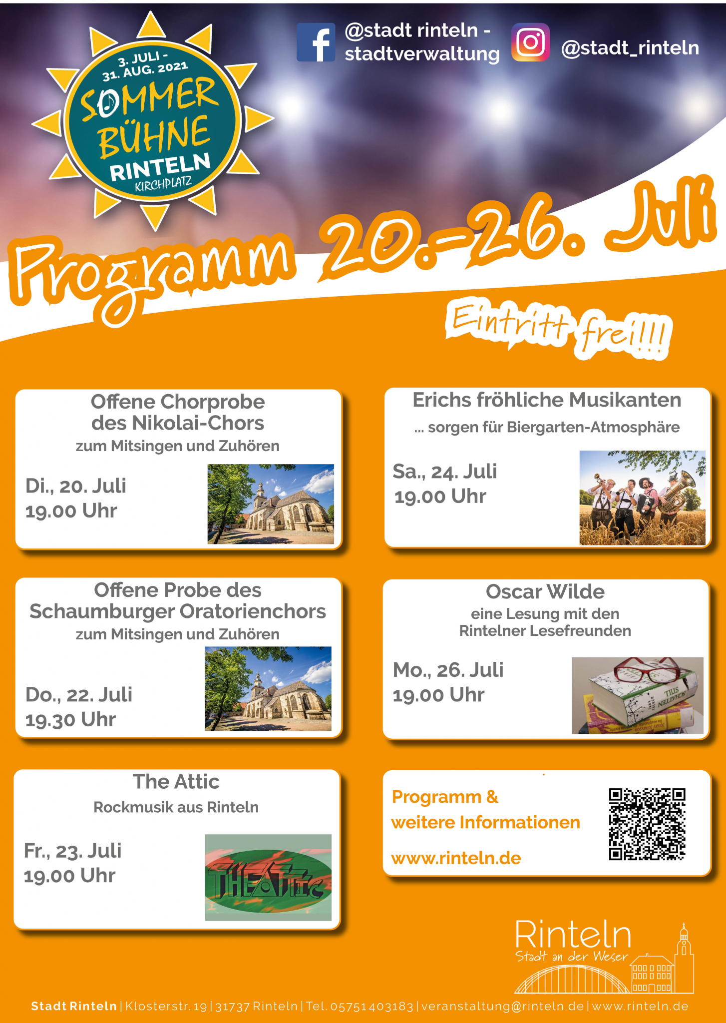 Das vollständige Programm der Rintelner Sommerbühne bis zum 31. August 2021 sowie weitere Informationen erhalten Sie auf www.rinteln.de.