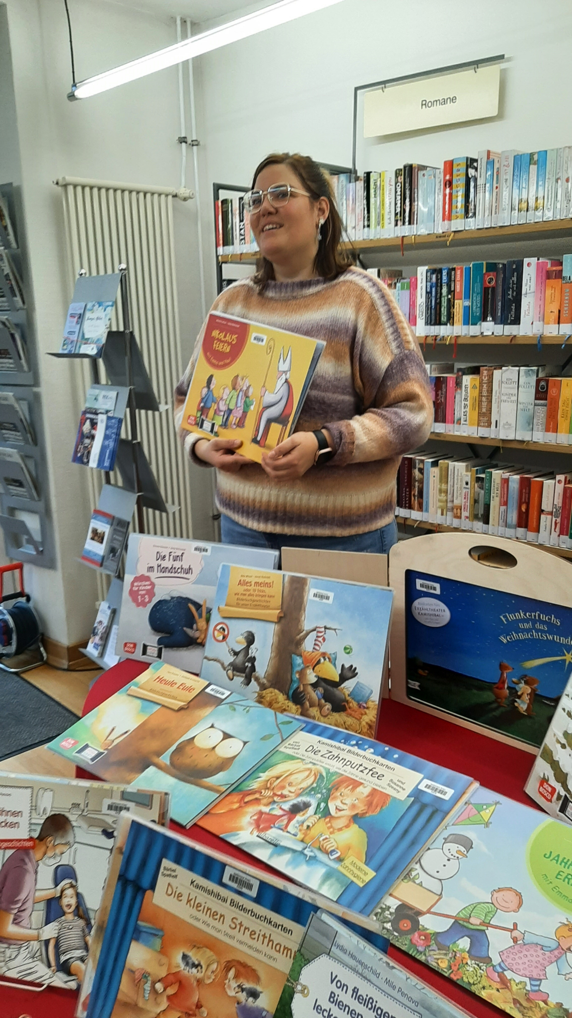 Der Vorstand der Stiftung war dabei, als die erste Ausleihe an die Kita Klabauternest ging. Kayleigh Grosser war extra von der Kita gekommen, um für die Kinder ein paar schöne Geschichten mitzunehmen. Sie erklärte auch, wie das funktioniert.