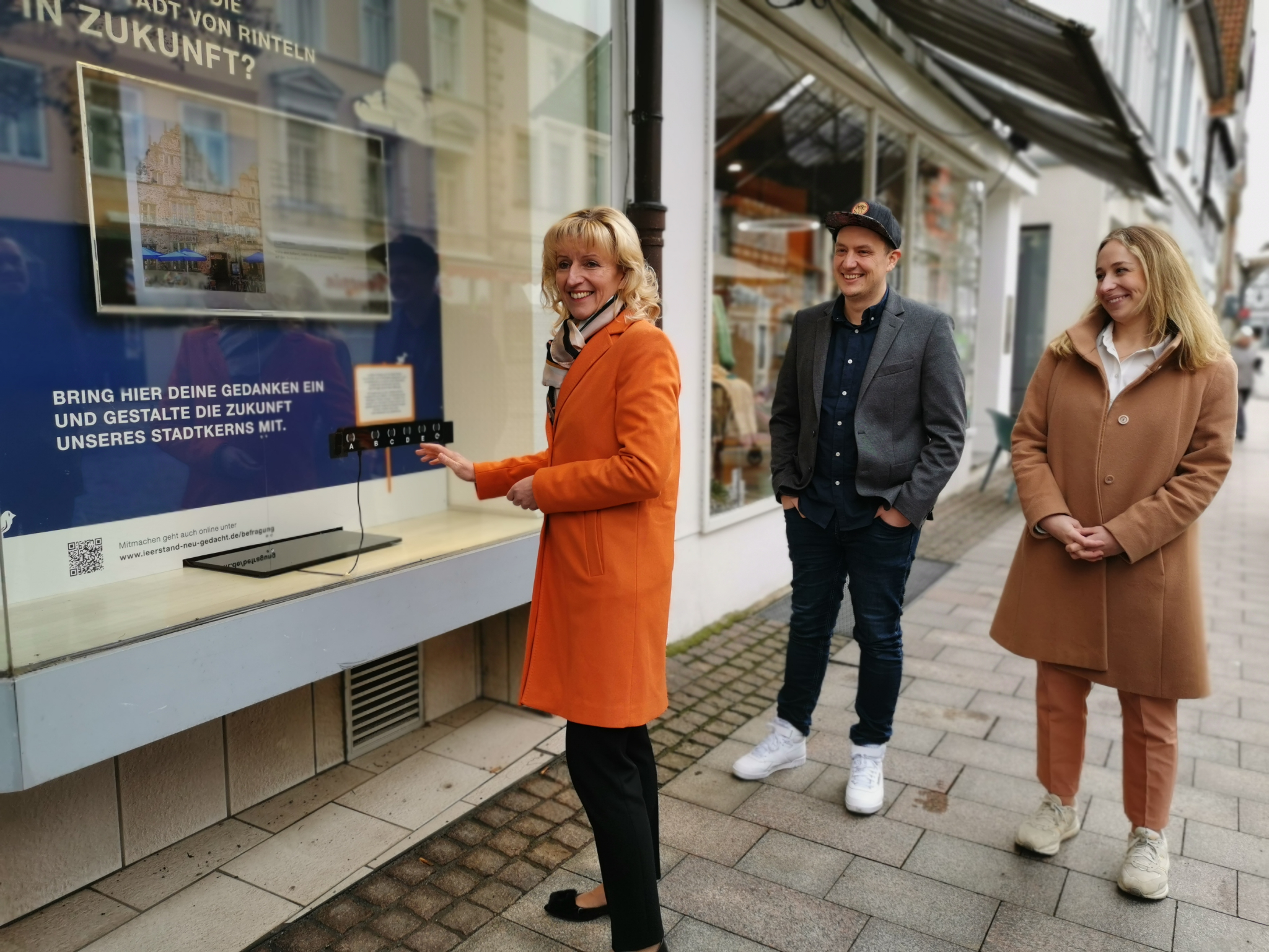 Am 02. Februar 2023 ist der offizielle Projektstart von „Rinteln morgen – Leerstand neu gedacht“. Das ehemalige Modehaus Beckmann wird dabei zum Ort der Kollaboration und Innovation. In den Schaufenstern können sich Passantinnen und Passanten jederzeit zum Projekt informieren. Außerdem ist eine Beteiligungsmöglichkeit installiert, über die alle eingeladen sind, ihre Meinung mit Blick auf die aktuelle Situation der Innenstadt zu den Themen Einzelhandel, Gastronomie, Dienstleistungen, Bildung und Soziales zu teilen. Darüber hinaus ist eine Teilnahme unter www.leerstand-neu-gedacht.de/befragung möglich.