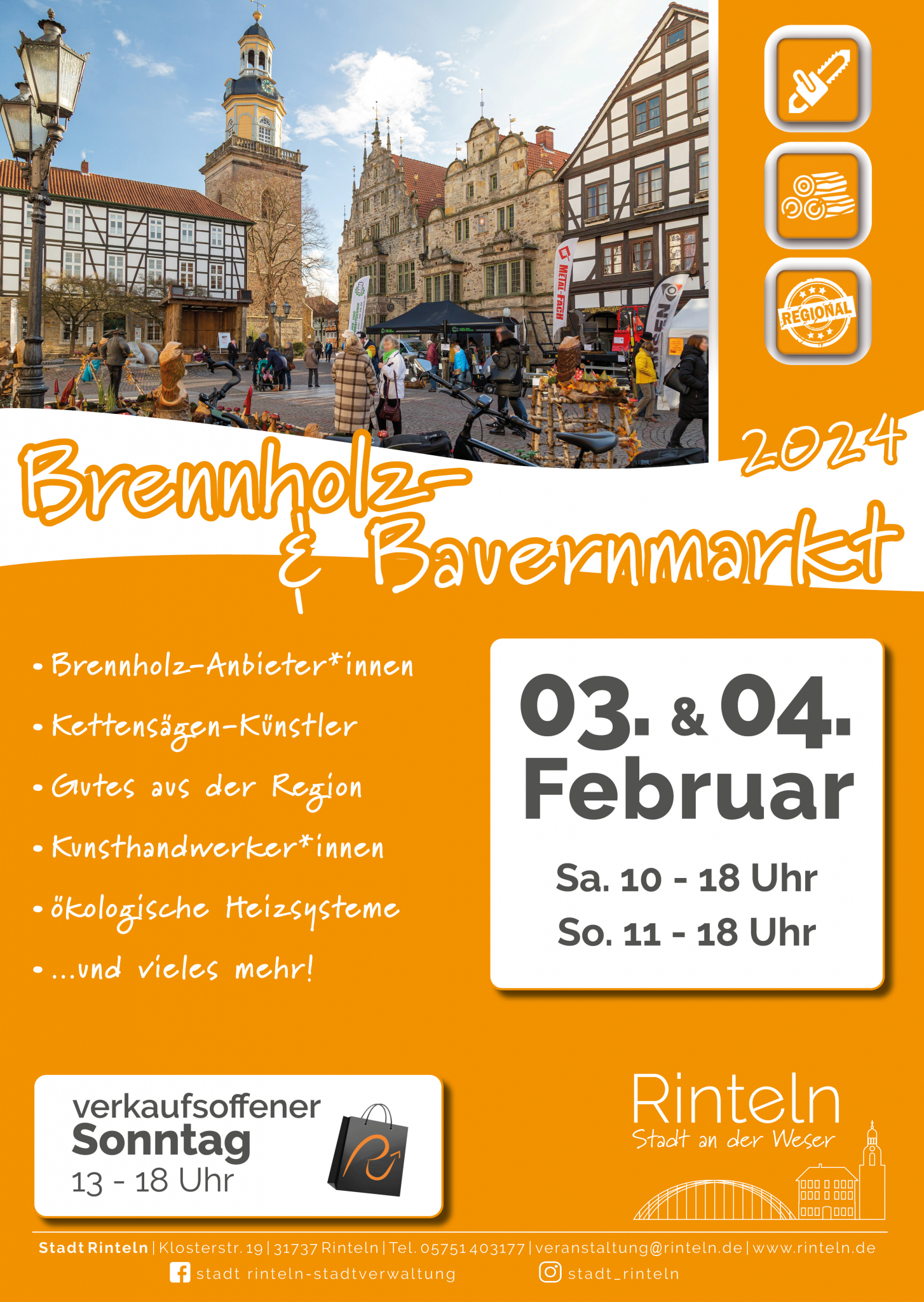 Die Stadt Rinteln läutet die Marktsaison 2024 mit dem „Brennholz- und Bauernmarkt“ vom 03. bis 04. Februar ein.