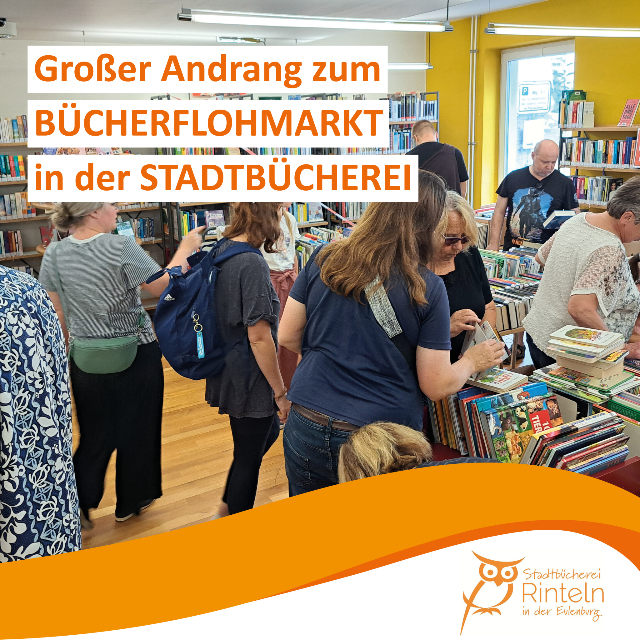 Am vergangenen Sonntag nutzte die Stadtbücherei Rinteln den Öko- und Bauernmarkt in der Innenstadt und lud zum großen Bücherflohmarkt in ihre Räumlichkeiten ein. Erhältlich waren gut erhaltene Bücher, Zeitschriften, CDs und DVDs zum Schnäppchenpreis. Fast 400 Menschen nutzten die Gelegenheit, um sich mit günstigem Lesestoff einzudecken. Darunter waren auch viele Familien mit Kindern, die begeistert Erstlesebücher, Vorlesegeschichten oder beliebte Reihen wie „Das magische Baumhaus“ auswählten. Aber auch die Erwachsenen kamen auf ihre Kosten. Hier waren Krimis und heitere Romane sehr gefragt. Bei den Sachbüchern wurde intensiv gestöbert: ein neues Muffin-Backbuch, ein Titel zur Gartengestaltung, ein dreibändiges Lexikon über Pferderassen – für jeden Geschmack war etwas dabei. Über den Ratgebern zur Hundeerziehung kam man gleich ins Gespräch über die kleinen Racker.
