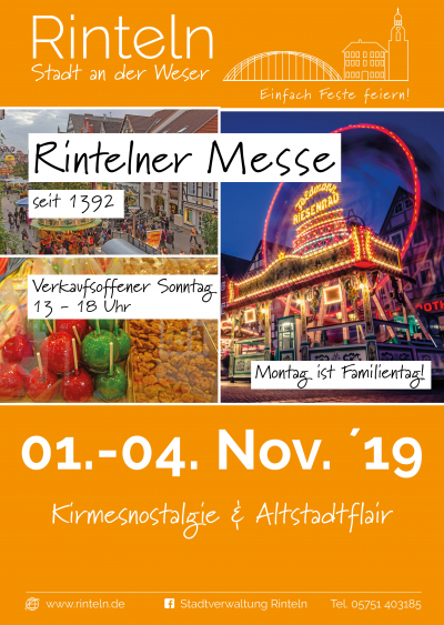 Die Bilderbuchkirmes im Weserbergland - Rintelner Herbstmesse lockt vom 01. bis 04. November 2019