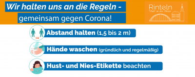 Die Stadt Rinteln weist mit Bannern an verschiedenen Standorten im Stadtgebiet auf die wichtigsten Corona-Verhaltensregeln hin.
