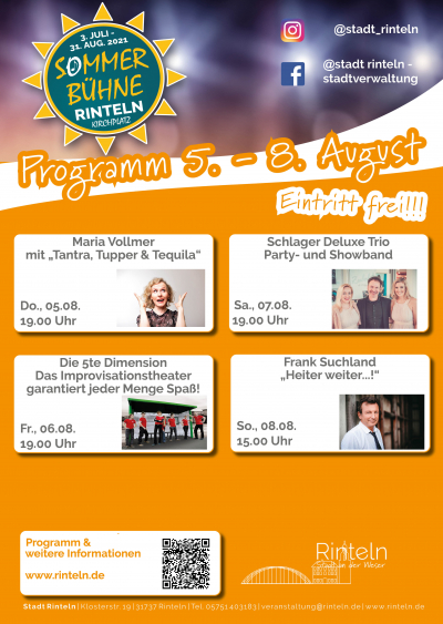 Endspurt auf der Rintelner Sommer-Bühne 2021 - Programm vom 25.08. – 31.08.2021
