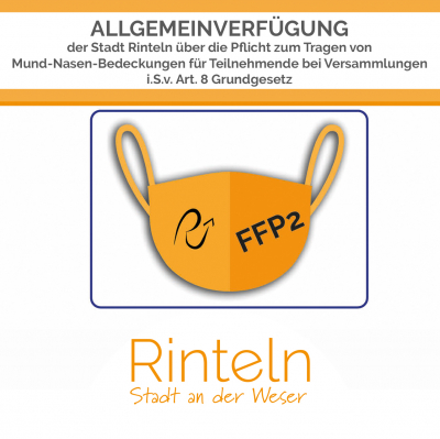 Die Stadt Rinteln teilt mit, dass sie eine Allgemeinverfügung erlassen hat, wonach die Teilnehmenden, Leitenden sowie Ordnerinnen und Ordnern bei Versammlungen unter freiem Himmel i.S.v. Art. 8 Grundgesetz auf dem Gebiet der Stadt Rinteln verpflichtet sind, eine Atemschutzmaske mindestens des Schutzniveaus FFP2, KN 95 oder eines gleichwertigen Schutzniveaus zu tragen haben.