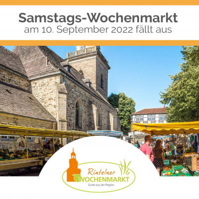 Am kommenden Wochenende findet der Rintelner Öko- und Bauernmarkt statt. Aus diesem Grund fällt der Wochenmarkt am kommenden Samstag, 10. September 2022 aus.