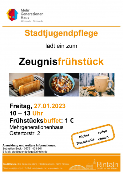 Die Stadtjugendpflege lädt zum Zeugnisfrühstück ein!