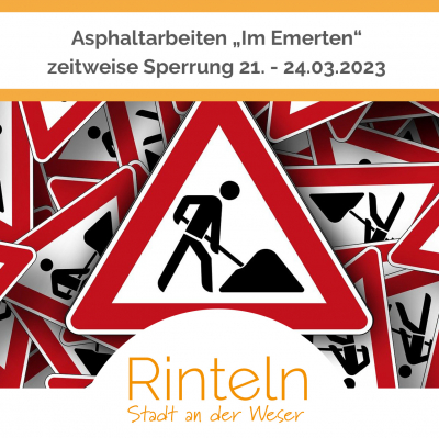 In der Straße „Im Emerten“ wird in der Zeit vom 21.03. bis 24.03.2023 die noch fehlende Asphaltdeckschicht aufgebracht.