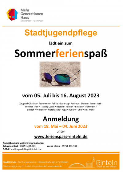 Start der Anmeldungen für den Sommerferienspaß 2023