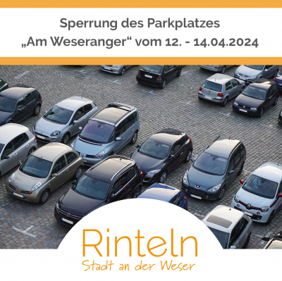 Vom 12.04. - 14.04.2024 ist der Parkplatz Weseranger aufgrund einer Veranstaltung (31. SFG Jugend-Kart-Slalom 2024) gesperrt.
