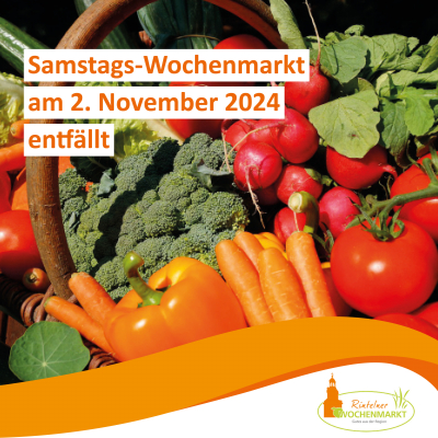 Samstags-Wochenmarkt am 5. Oktober 2024 findet auf dem MARKTPLATZ statt