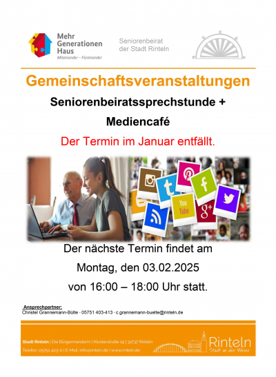 Mediencafé und Seniorenbeiratssprechstunde im Januar noch in der Winterpause