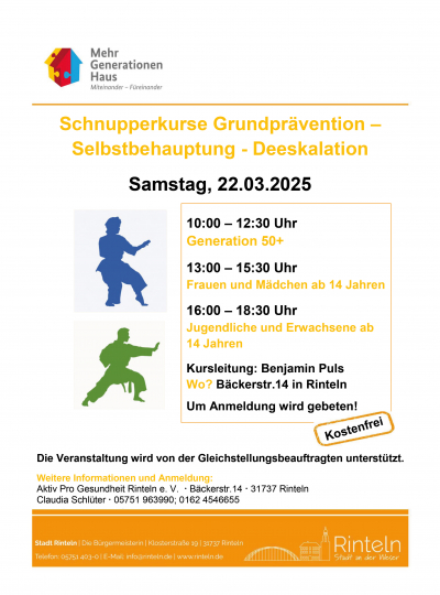 Mehrgenerationenhaus, Gleichstellungsbeauftragte und Budo SV bieten kostenlose Workshops