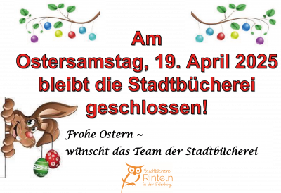 Am Ostersamstag, den 19. April bleibt die Stadtbücherei Rinteln geschlossen.