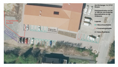 Ab dem 01.04.2025 beginnen die Baumaßnahmen für die Erweiterung der Arztpraxis in Krankenhagen, Am Kirchanger 14b. Hier wird sich während der Bauzeit, die voraussichtlich bis Ende Februar 2026 geht, die Parksituation ändern.