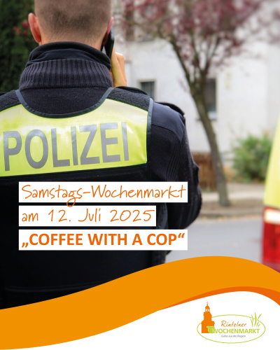 „Coffee with a cop“ auf dem Samstags-Wochenmarkt am 12. Juli 2025